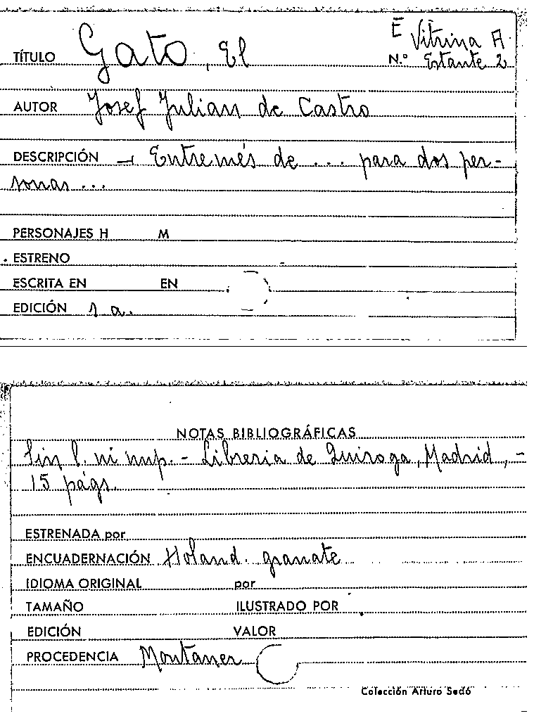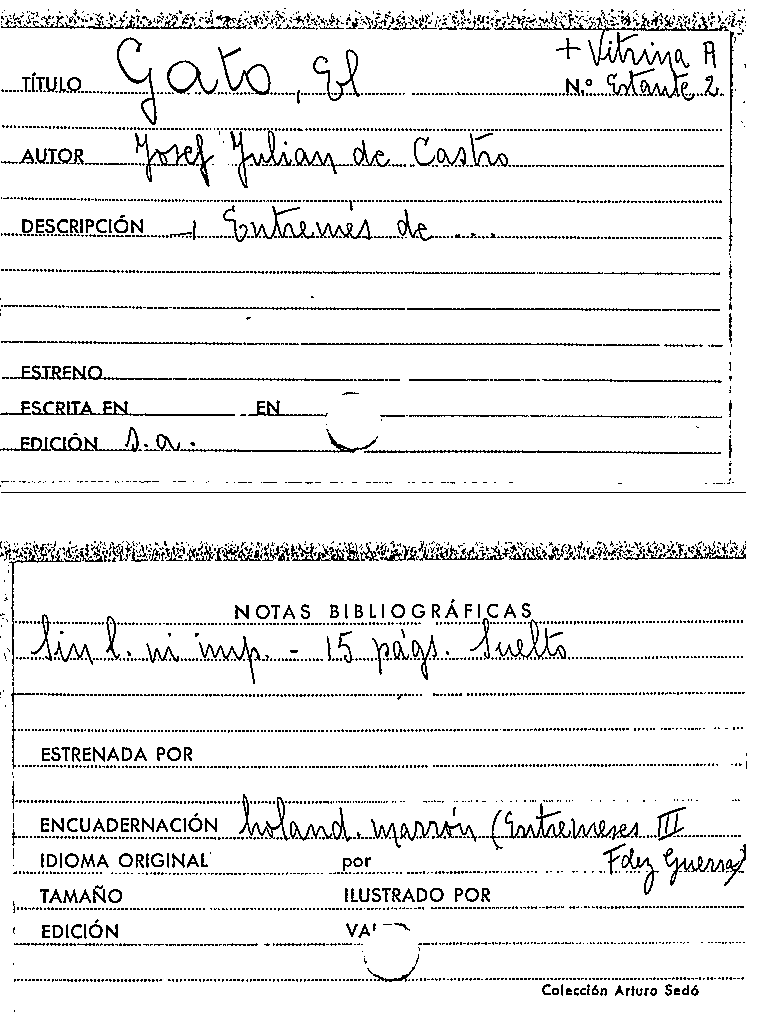 Ex-libris Colección Teatral Arturo Sedó. Segell de la Colección Teatral Arturo Sedó a portada. Procedència Fernández Guerra