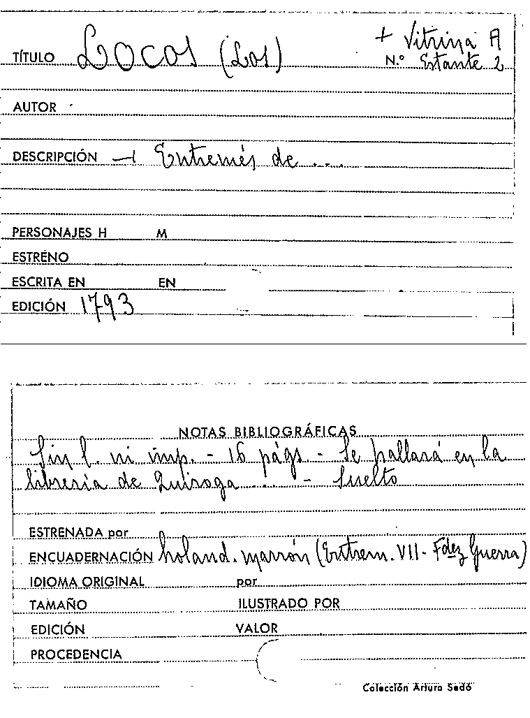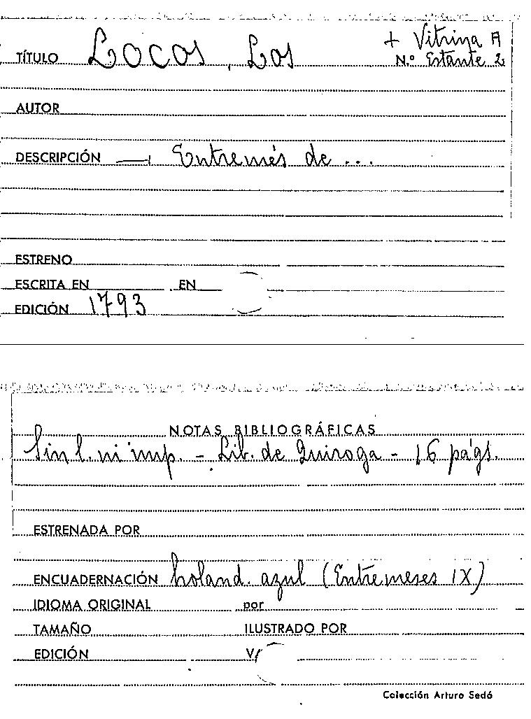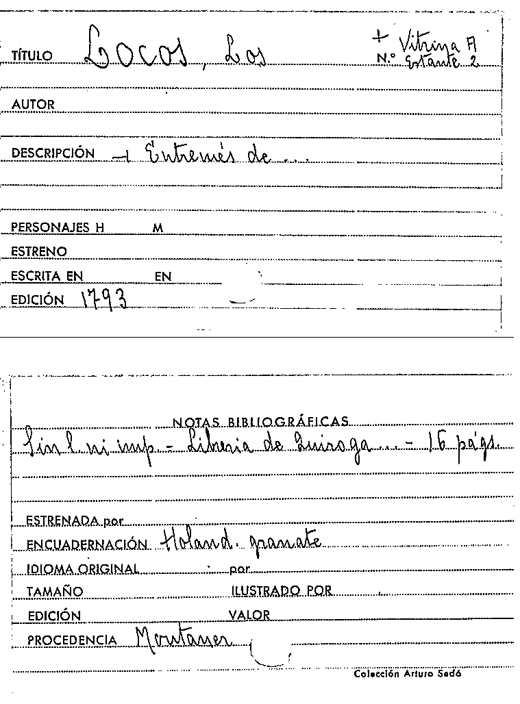 Ex- libris de la Colección teatral Arturo Sedó. Segell de la Colección teatral Arturo Sedó a portada. Procedència: Fernández Guerra Exemplar digitalitzat Artur Sedó