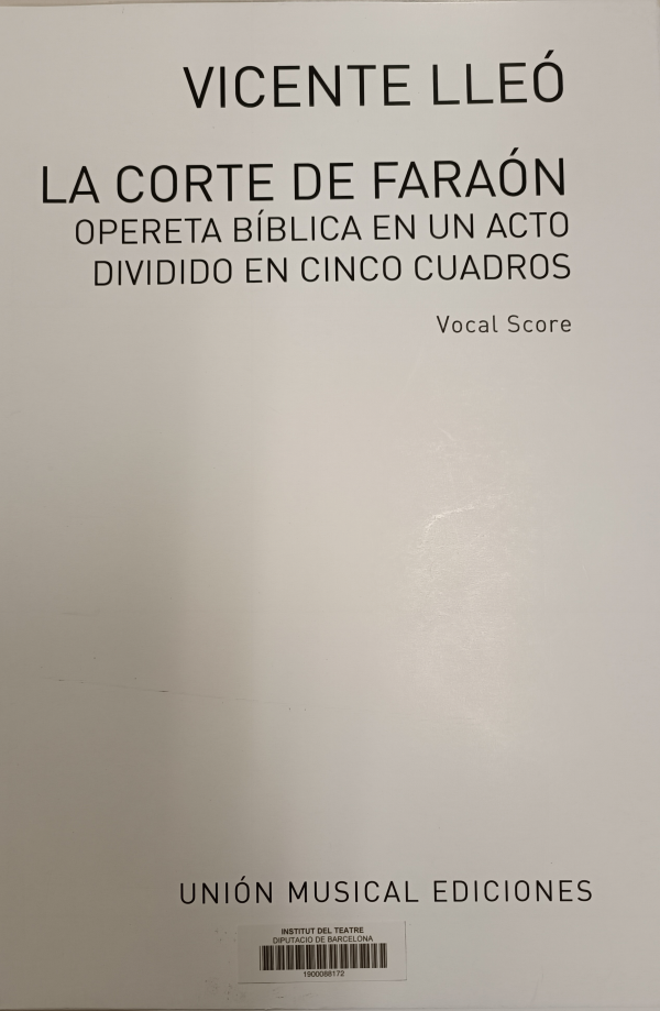 La Corte de faraón : opereta bíblica en un acto dividido en cinco cuadros / letra de los señores Guillermo Perrín y Miguel de Palacios ; música del maestro Vicente Lleó