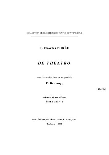 "Au XVIIIe siècle les jésuites maintiennent leur soutien aux spectacles en dépit de la violente hostilité manifestée par Bossuet en 1694 et d’un rebondissement aigu de la polémique dans les années 1730, qui excède de loin de simples enjeux esthétiques. Le P. Charles Porée (1676-1741), régent de rhétorique pendant trente-trois ans au collège Louis le Grand, auteur de théâtre, de livrets ou ballets et de nombreux discours et traités, intervient alors dans le débat en prononçant le De theatro, aussitôt édité et traduit par le P. Brumoy.Cette première édition critique permet d’apprécier, outre la mise en œuvre de la rhétorique jésuite au siècle des Lumières, les arguments développés à l’époque par les Pères en faveur des spectacles, mais aussi les liens complexes qui unissent leurs prises de position et un contexte politico-religieux difficile, annonciateur de la proche suppression de la Compagnie en France (1762)." -- contracoberta
