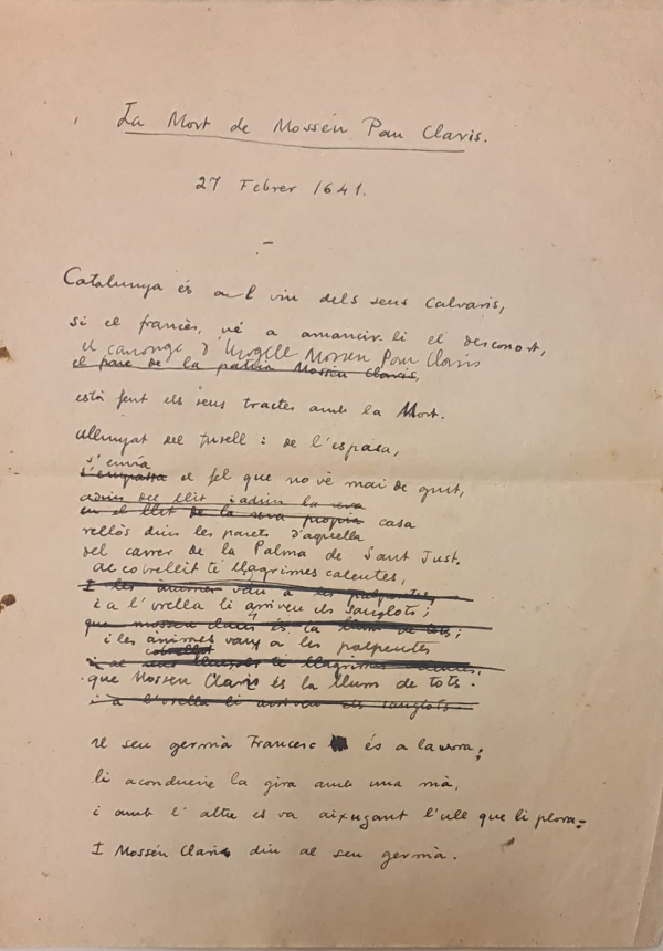 La mort de mossén Pau Claris : 27 febrer 1641 / Josep Maria de Sagarra