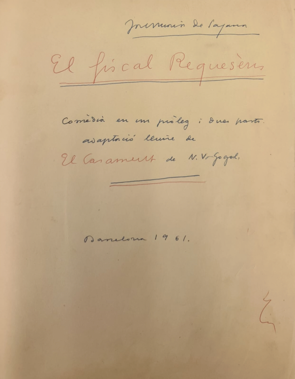 El fiscal Requesèns : comèdia en un pròleg i dues parts : adaptació lliure de El casament de N. V. Gogol / Josep Maria de Sagarra