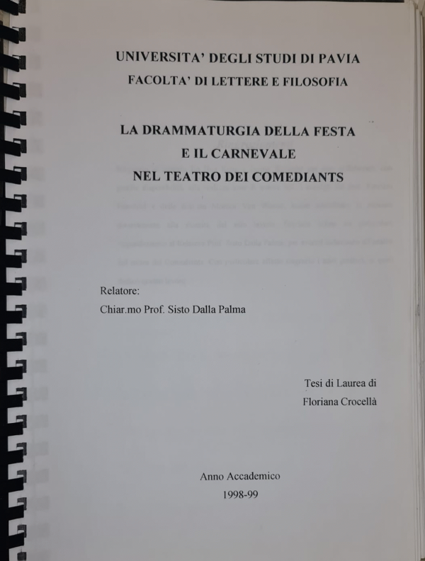 Tesi di laurea Università degli Studi di Pavia, Facoltà di Lettere e Filosofia, 1998-1999