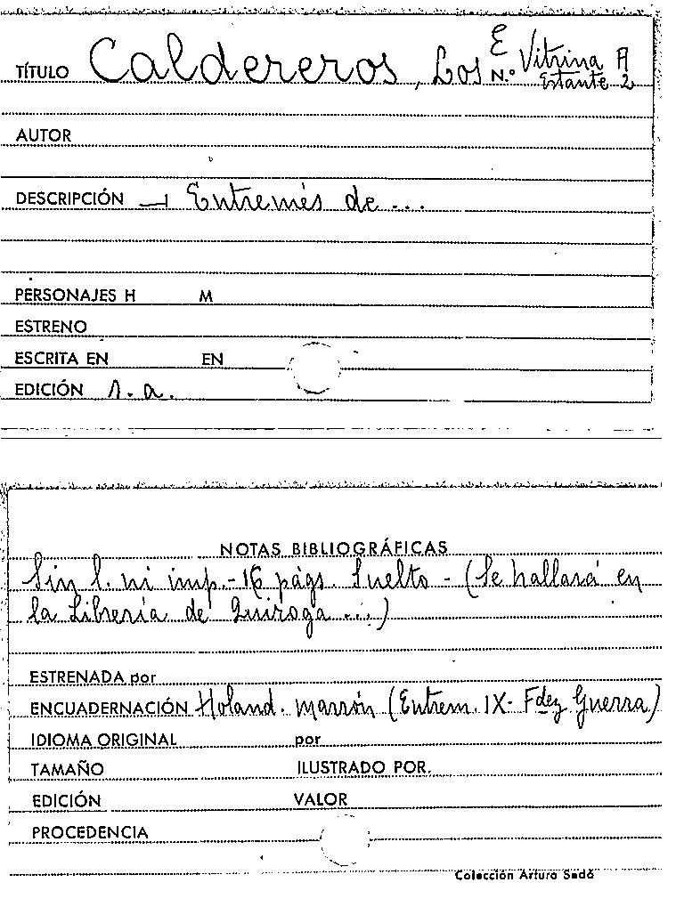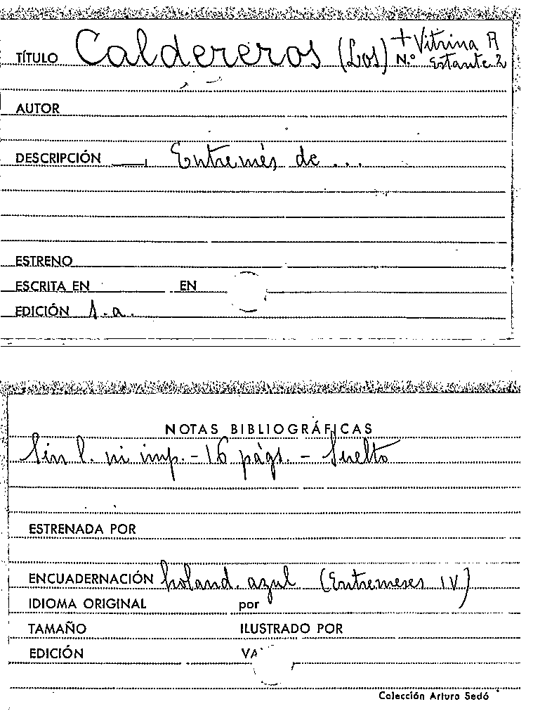 TextPublication details: [Madrid] : se hallará en la Librería de Quiroga, calle de la Concepcion Gerónima, [entre 1766 i 1804]Description: 16 p. ; 8º (16 cm)Other title: CaldererosOther title: - Caldereros