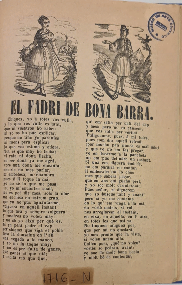 Al final del text: "La propiedad de este coloquio que lo era de Isidro Gomez, ha pasado à ser de B. Bellver"