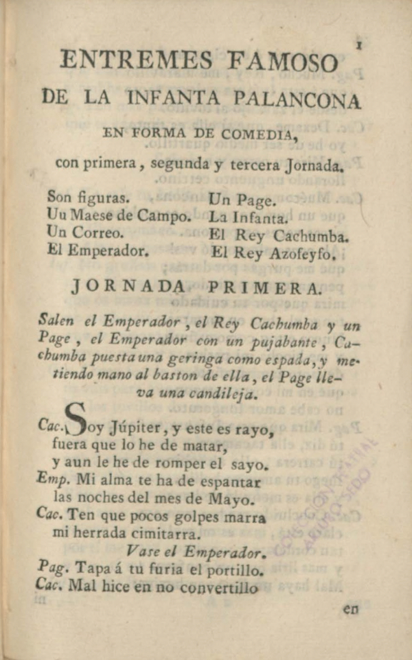 Entremes famoso de La Infanta Palancona : en forma de comedia, con primera, segunda y tercera jornadas