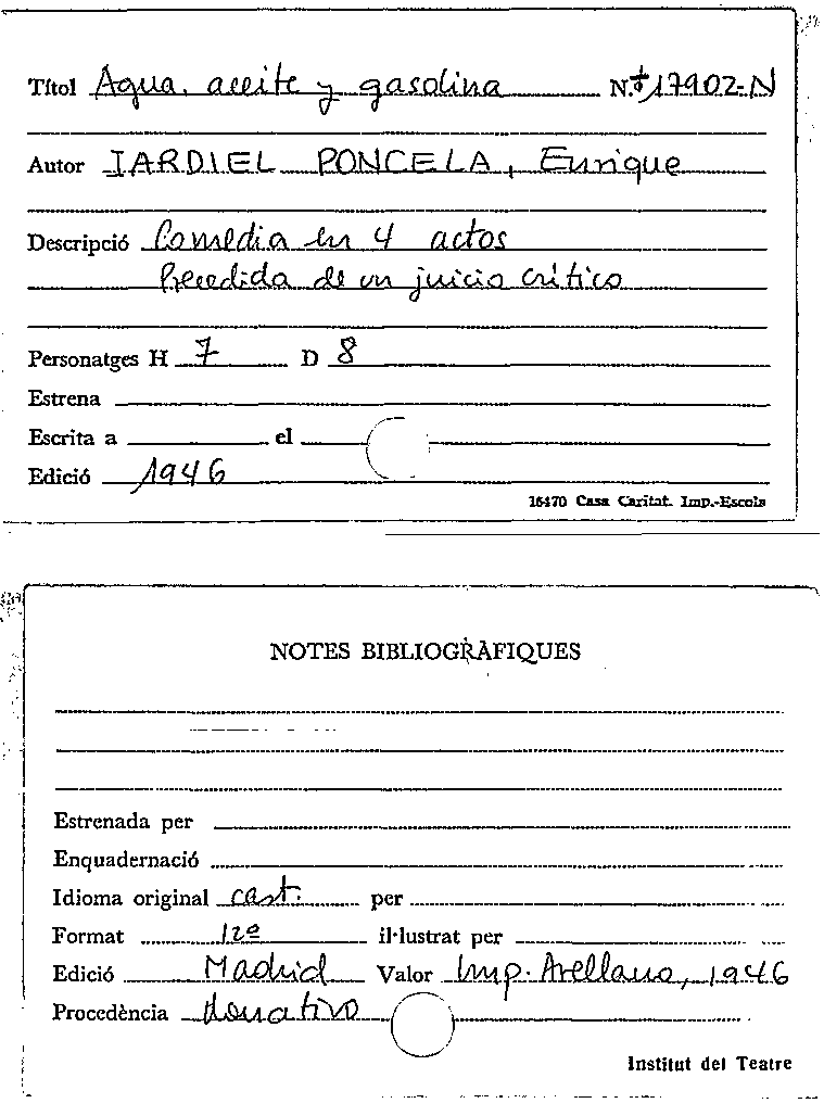 "Agua, aceite y gasolina" y otras dos mezclas explosivas / Enrique Jardiel Poncela by Series: His Teatro ; VIII