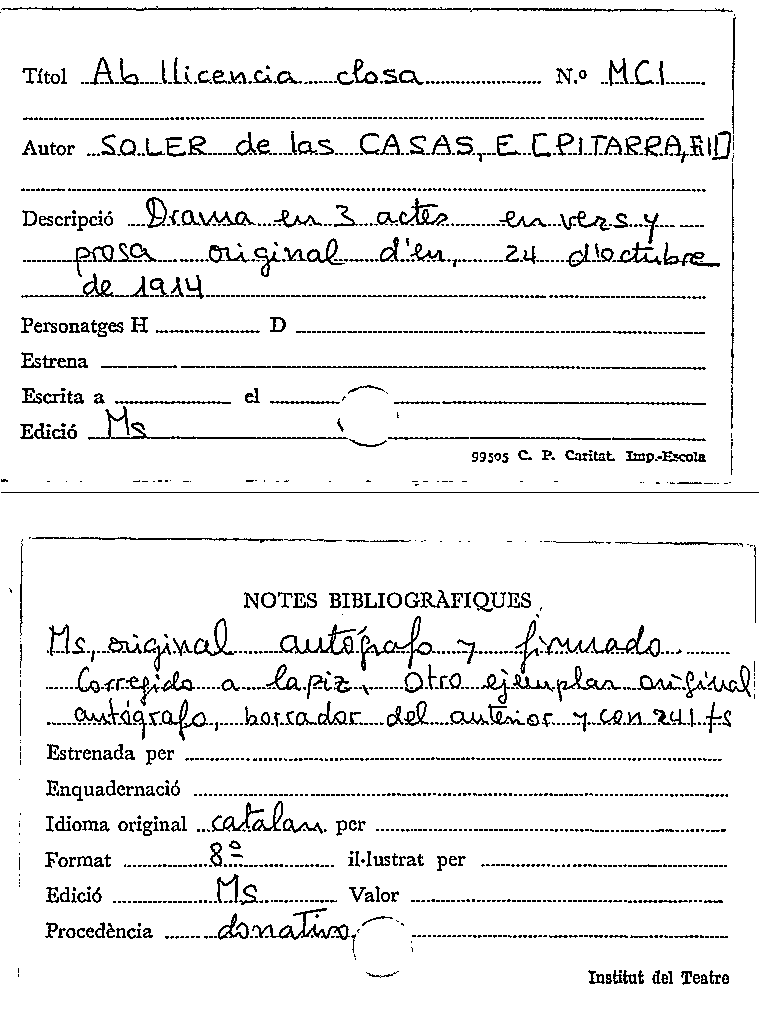 Publication details: Barcelona: Imp. Félix Costa, [s.a.]