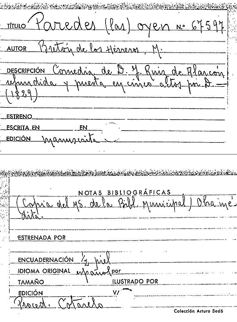 Las Paredes oyen / Juan Ruiz de Alarcón by