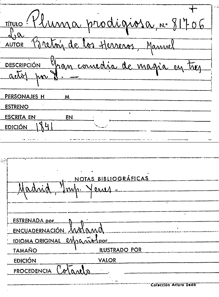 La Pluma prodigiosa / Manuel Bretón de los Herreros by