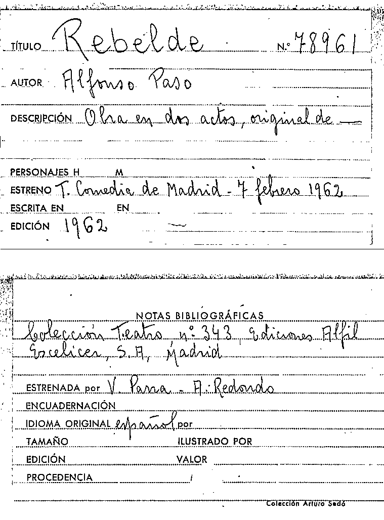 Rebelde / Alfonso Paso by Publicacions periòdiques: Colección teatro (1951) ; 343