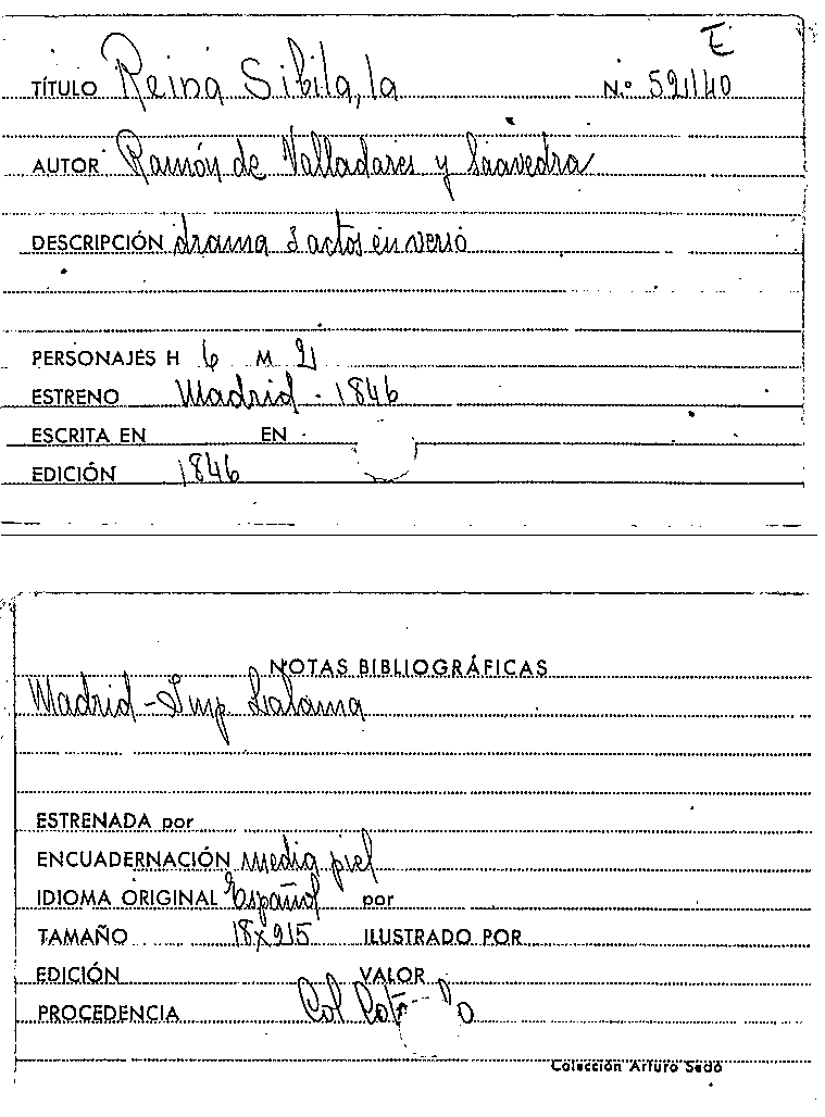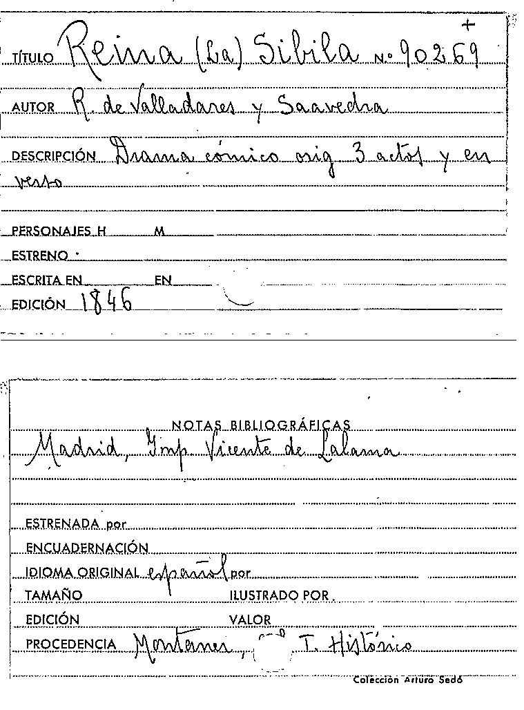 La Reina Sibila / Ramón de Valladares y Saavedra by