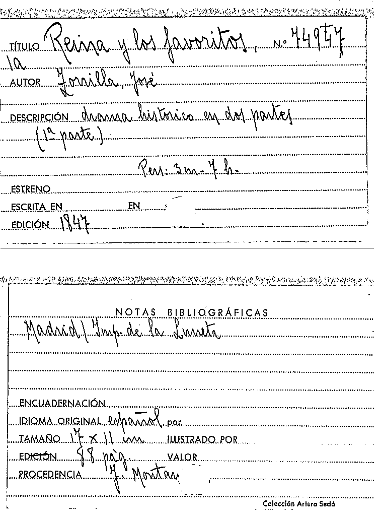 La Reina y los favoritos / José Zorrilla y Moral by