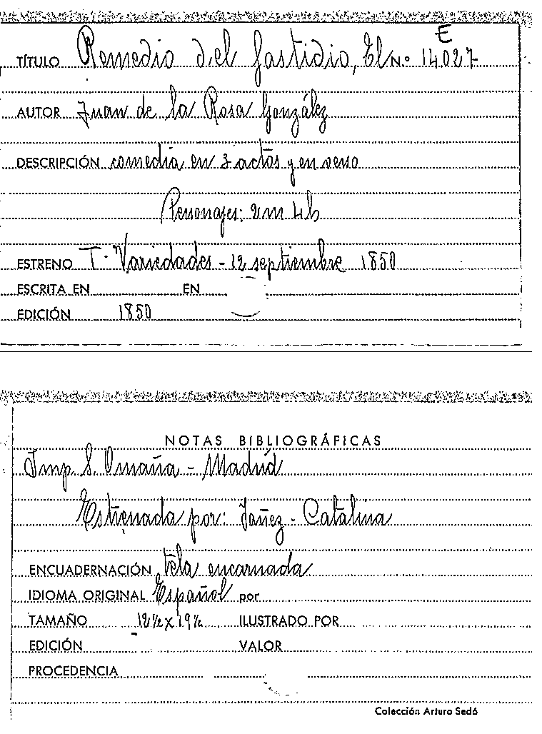 El Remedio del fastidio / Juan de la Rosa González by