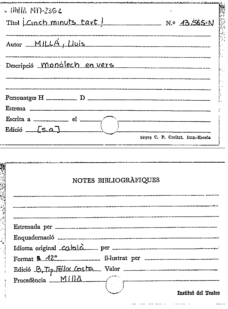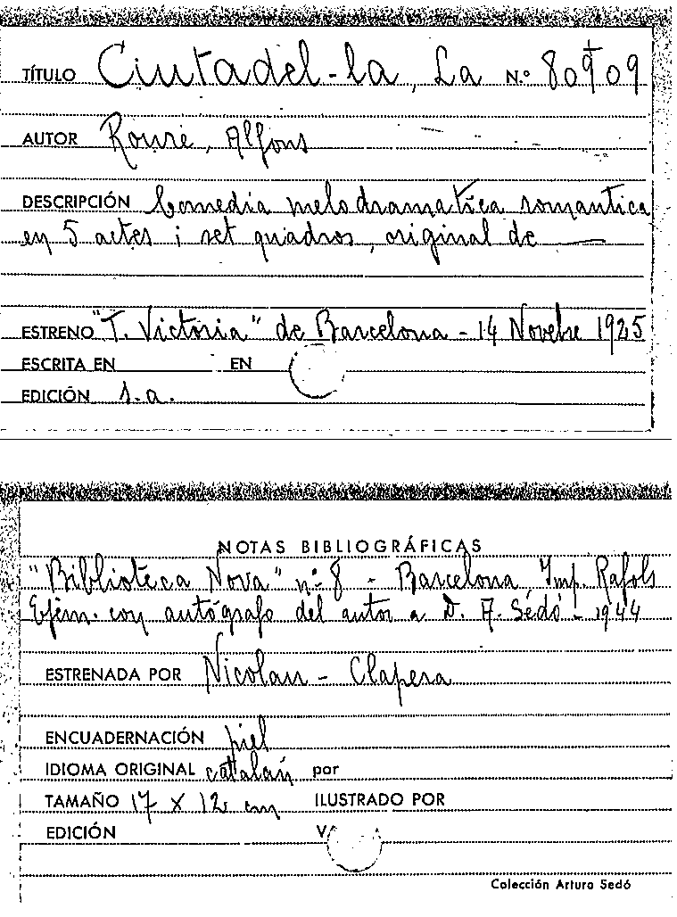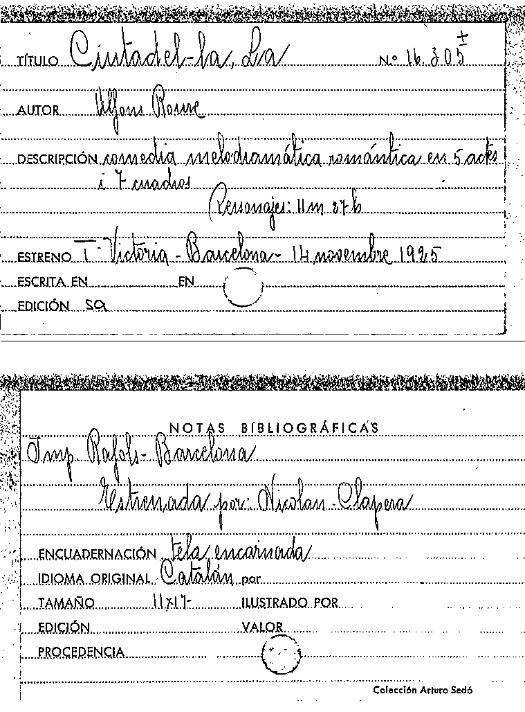 Publication details: Barcelona : Tip de Felix Costa, [s.a.]