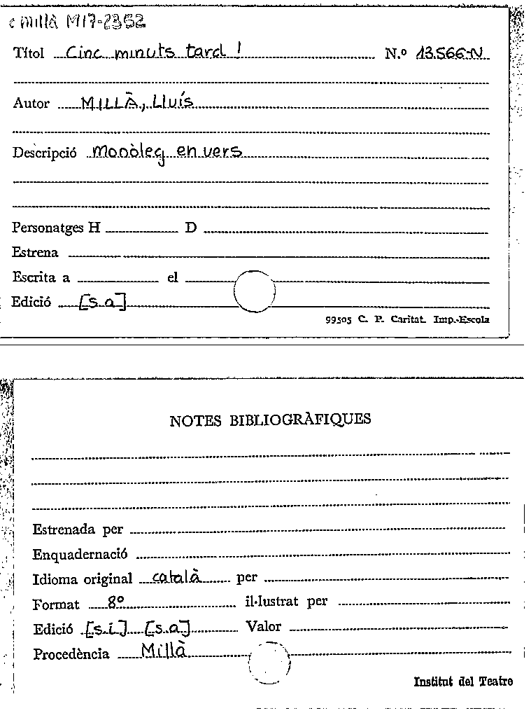 Cinc minuts tard! / Lluís Millà by