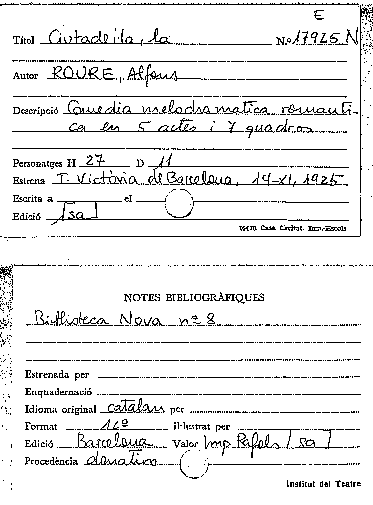 Availability: Items available for reference: Biblioteca Barcelona: Exclòs de préstec (1)Location, call number: BCN Magatzem Fons N 17317-N.
