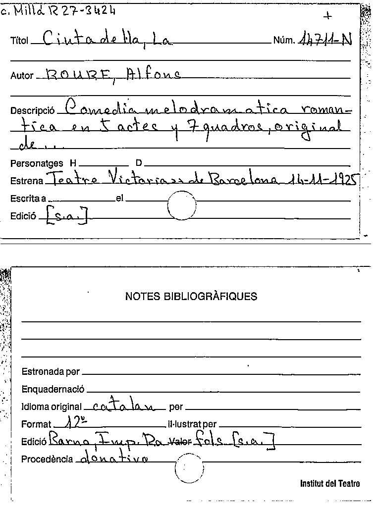 Availability: Items available for reference: Biblioteca Barcelona: Exclòs de préstec (1)Location, call number: BCN Magatzem Fons N 10289-N.