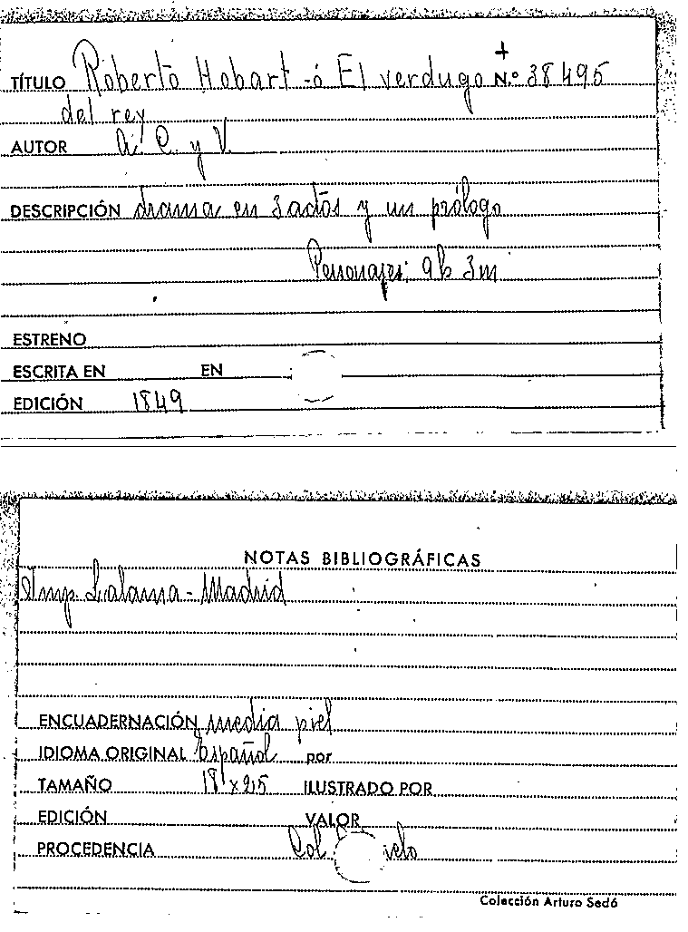 Roberto Hobart, ó, El Verdugo del rey / A. C y V. by