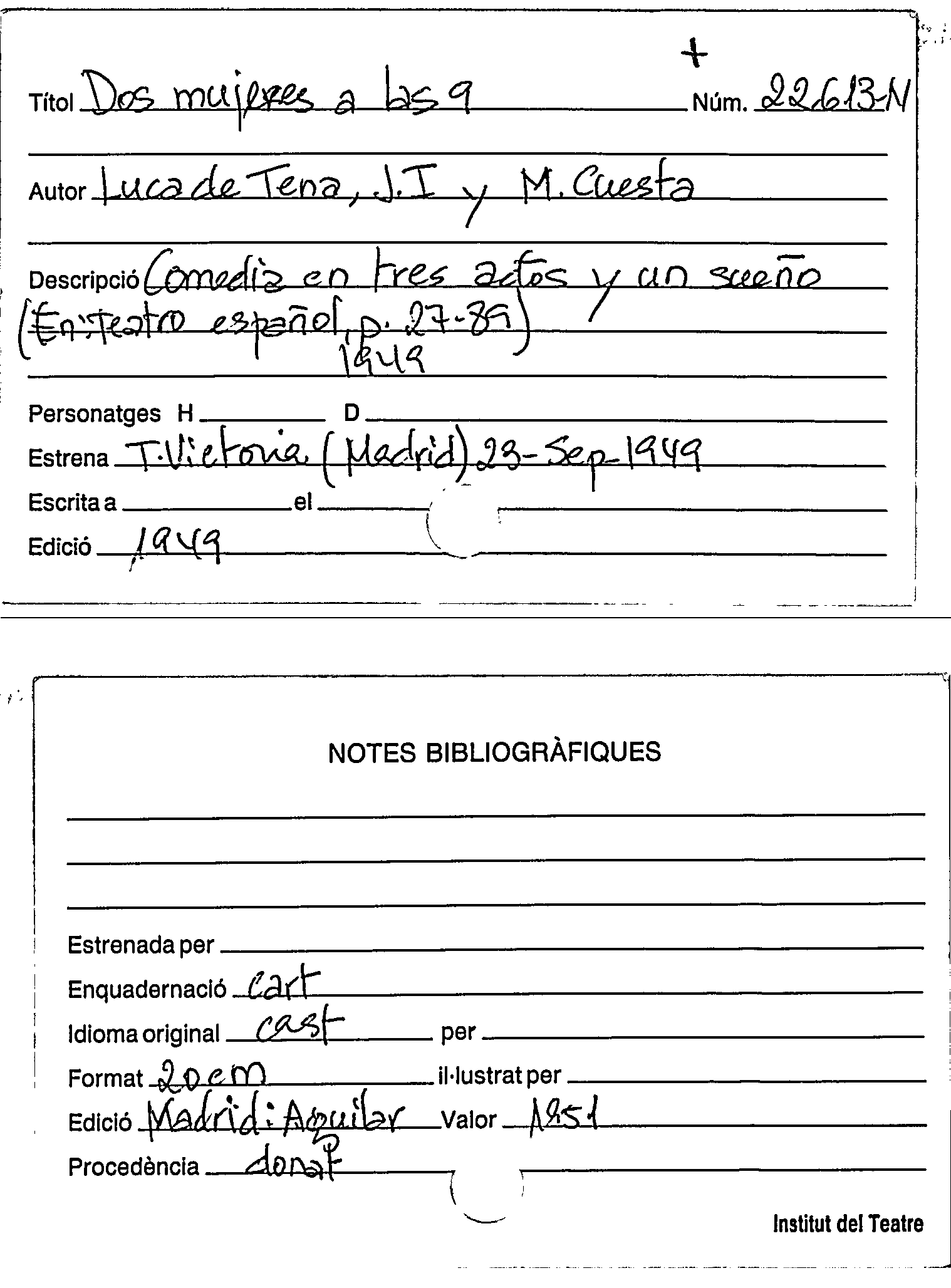 Availability: Items available for loan: Biblioteca Vic (1)Location, call number: OSONA-Vic 860 ANT tea. Items available for reference: Biblioteca Barcelona: Exclòs de préstec (2)Location, call number: BCN Magatzem Fons N 22613-N, ...