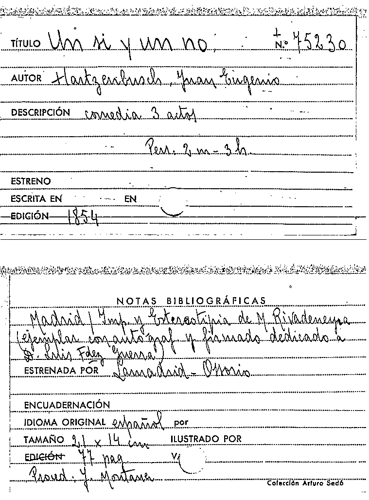 Un Sí y un no / Juan Eugenio Hartzenbusch by