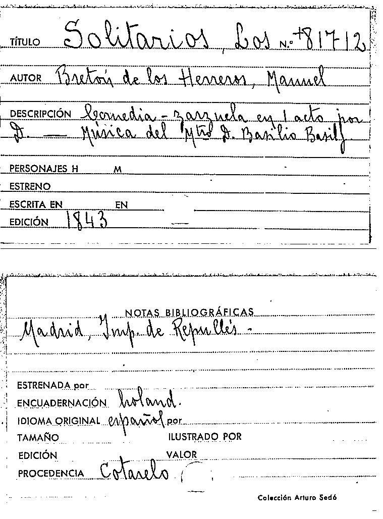 Publication details: Madrid: Imp. del Teatro de la Cruz, 1841