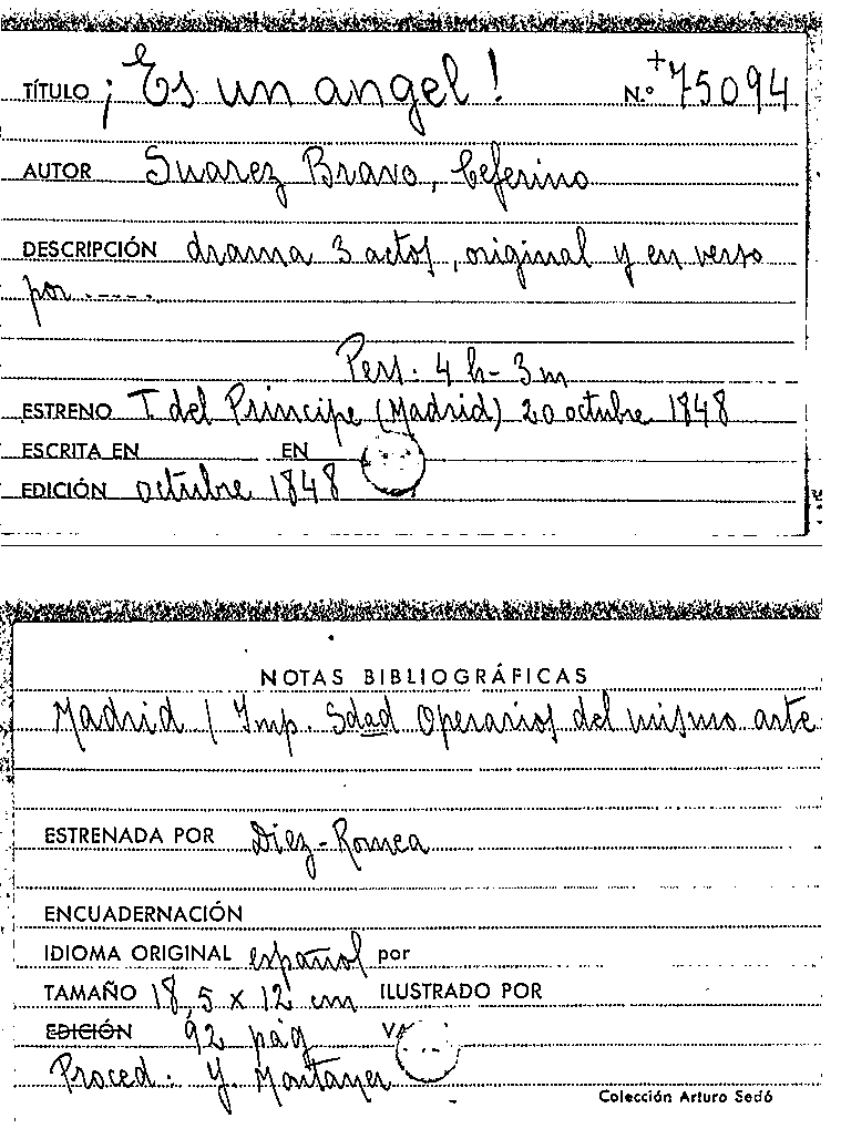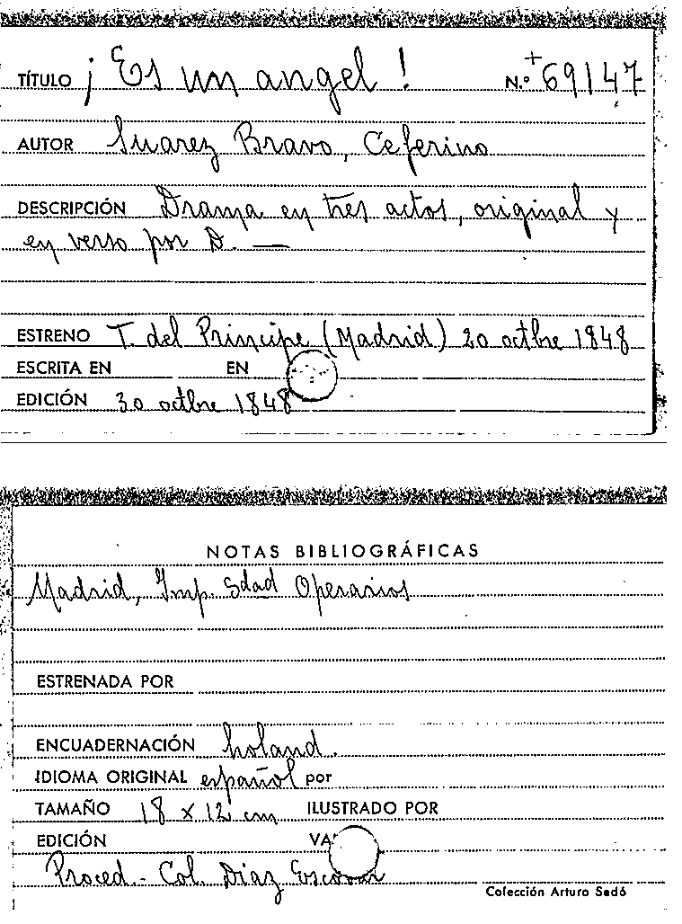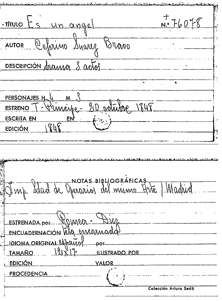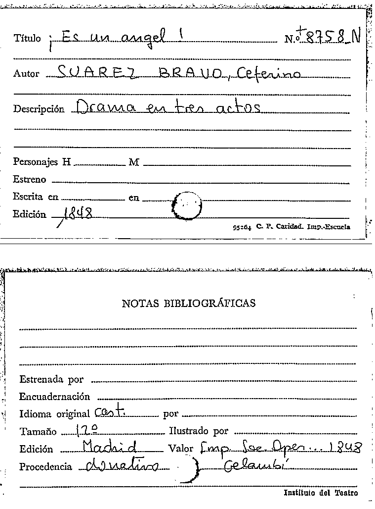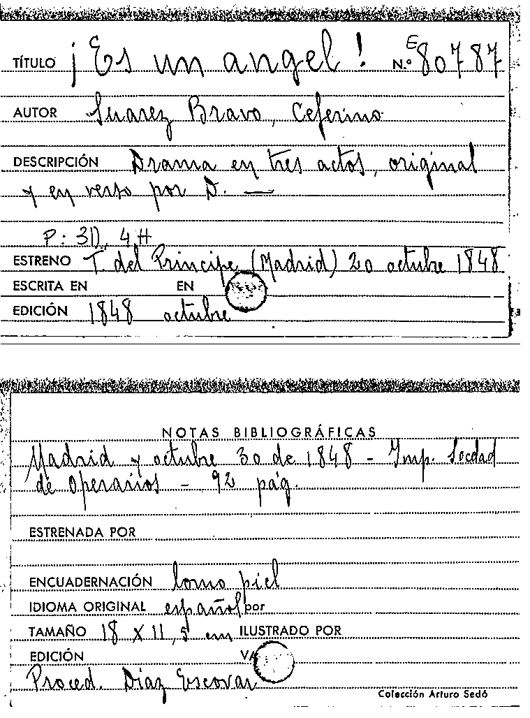 Es un angel! : drama en tres actos, original y en verso / por D. Ceferino Suárez Bravo by