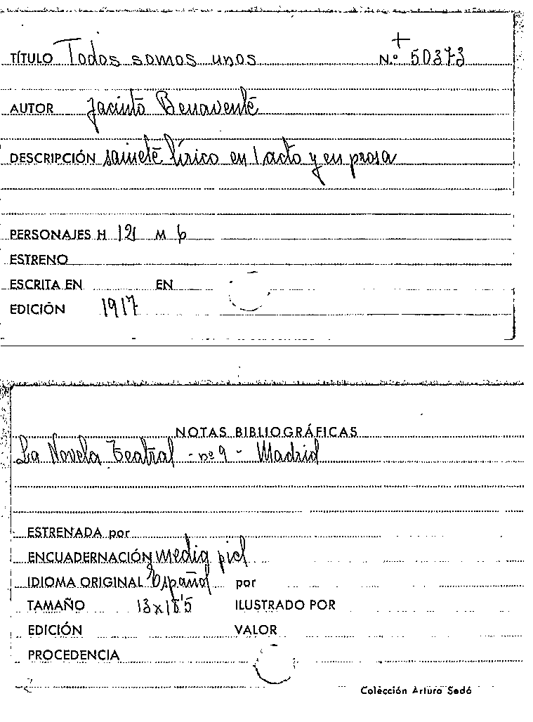 Todos somos unos / Jacinto Benavente by Series: La Novela teatral ; 9