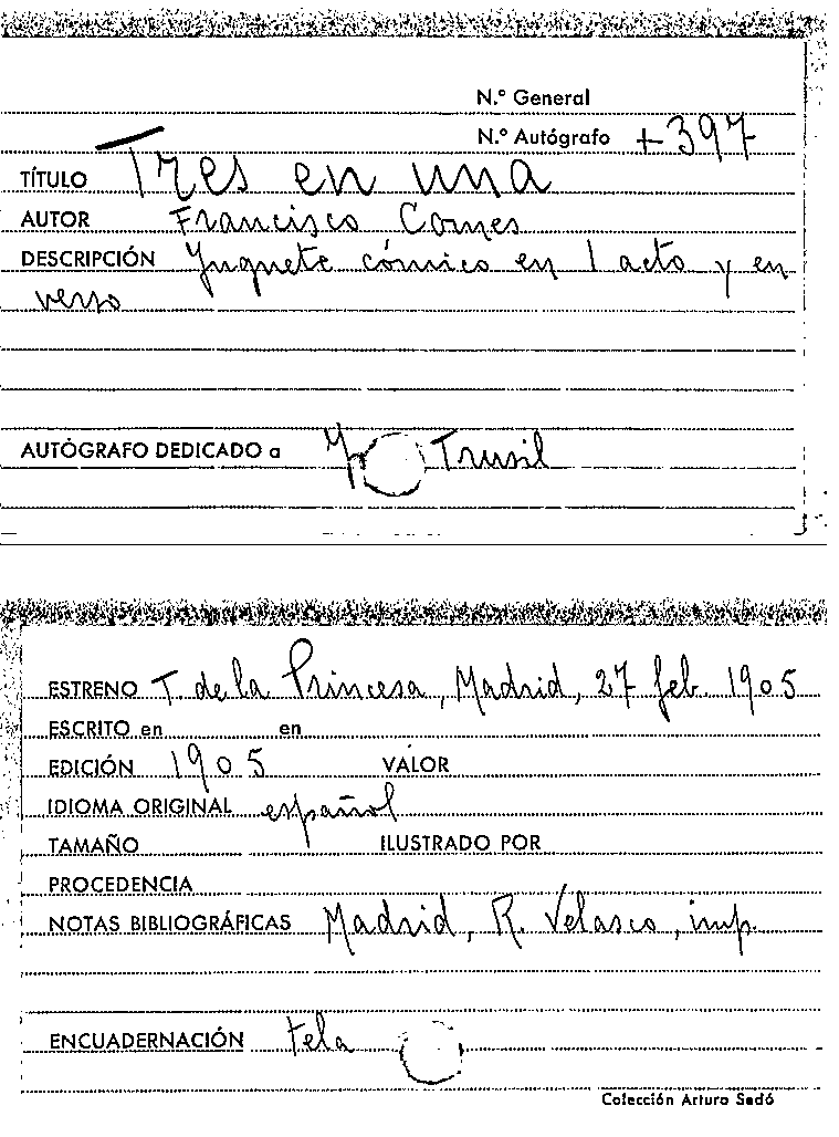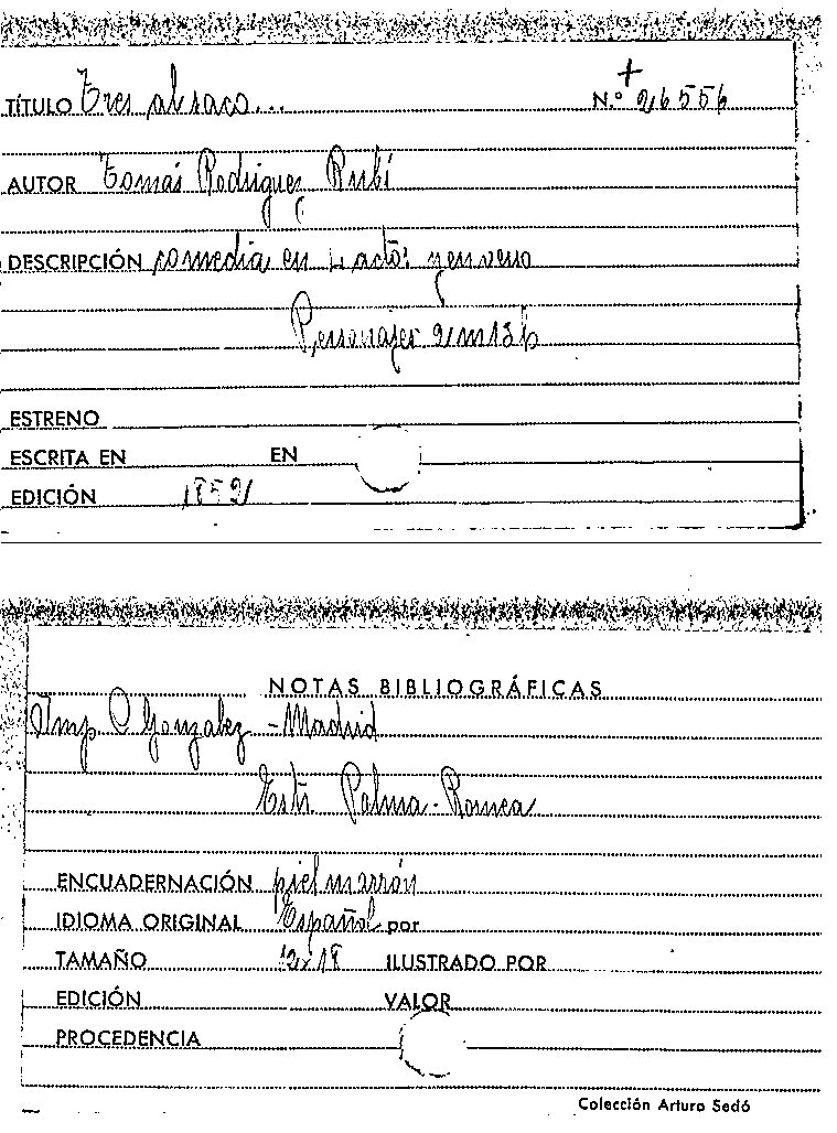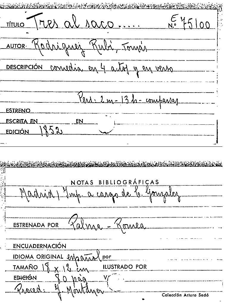Tres al saco ... / Tomás Rodríguez y Díaz Rubí by