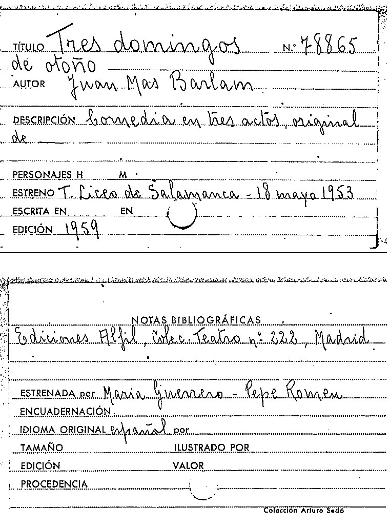 Tres domingos de otoño / Juan Mas Barlam by Series: Colección teatro (1951) ; 222
