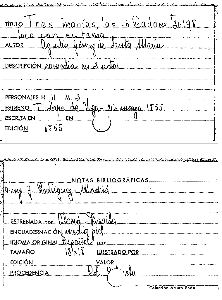 Las Tres manías, o, Cada loco con su tema / Agustín Gómez de Santa María by