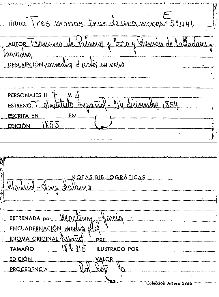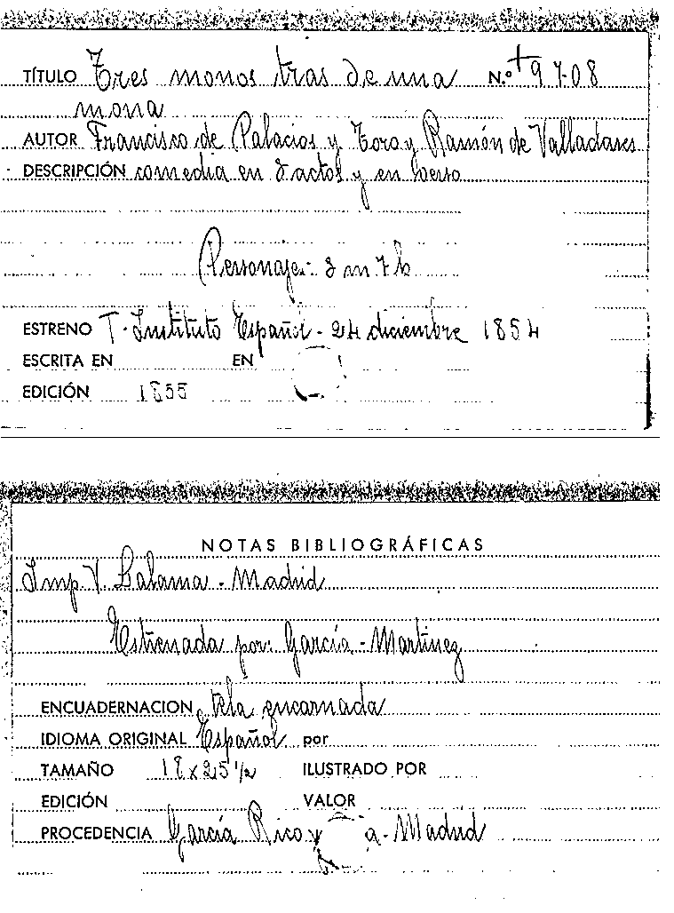 Tres monos tras de una mona / Francisco Palacios y Toro , Ramón de Valladares y Saavedra by
