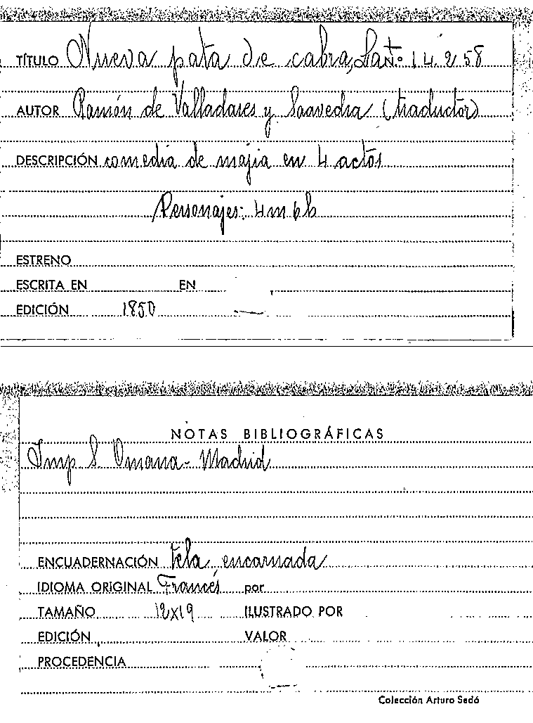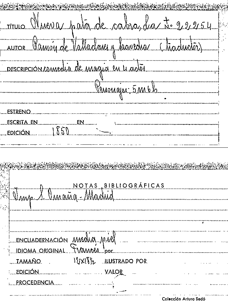 La nueva pata de cabra : comedia de majia en cuatro actos / traducida libremente del francés y arreglada a la escena española por Ramón de Valladares y Saavedra by