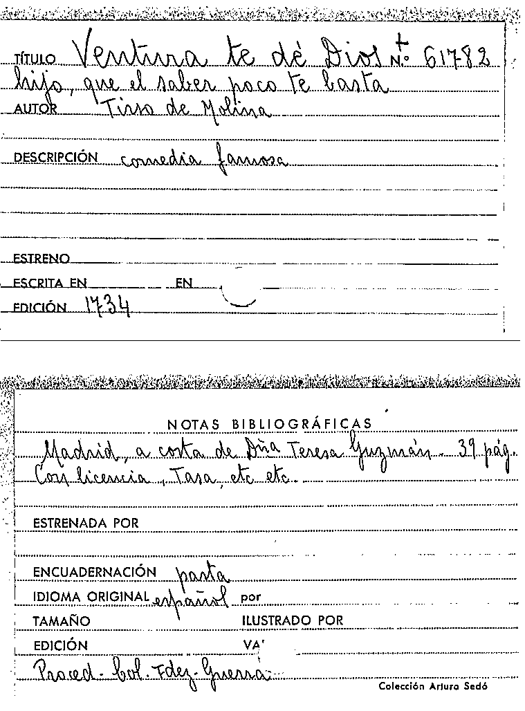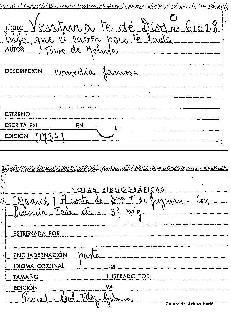Ventura te dé Dios, hijo / Tirso de Molina by