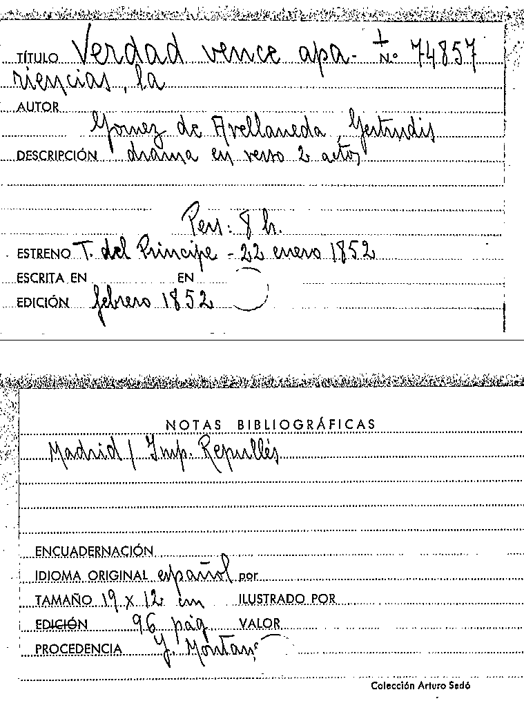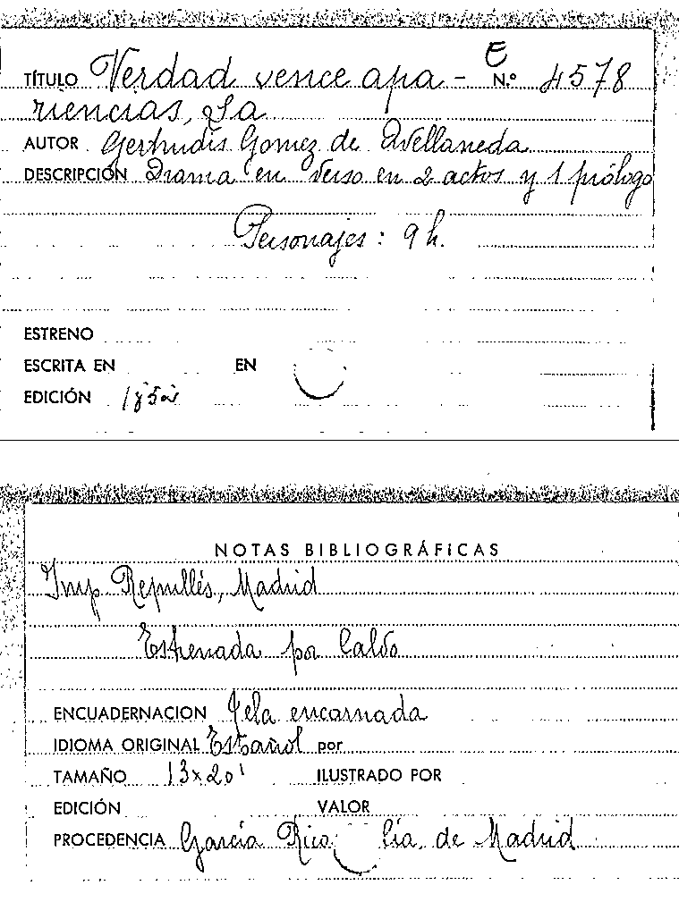 La Verdad vence apariencias / Gertrudis Gómez de Avellaneda y Arteaga by