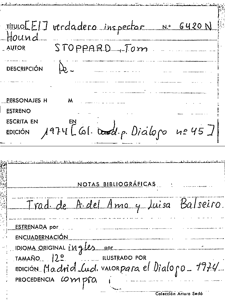 El Verdadero inspector Hound / Tom Stoppard by Series: Cuadernos para el diálogo ; 45
