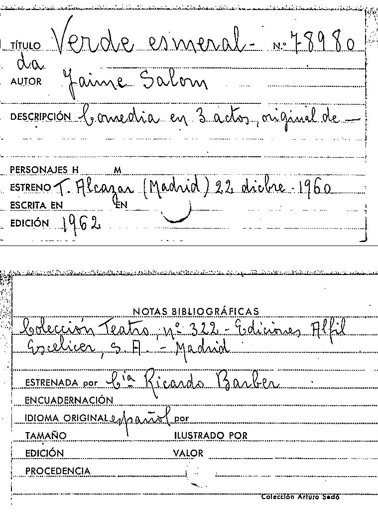 Verde esmeralda / Jaume Salom i Vidal by Series: Colección teatro (1951) ; 322