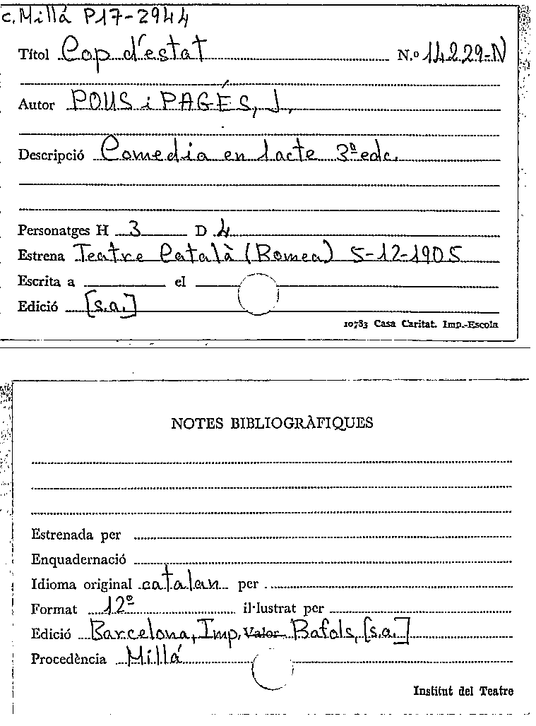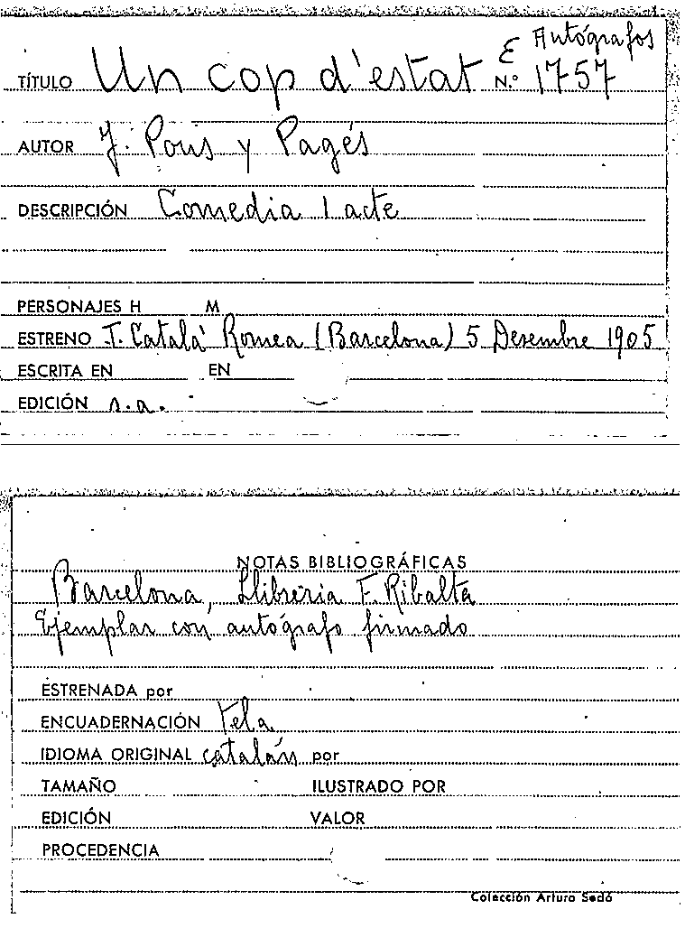 Publication details: Barcelona : Imp. Ràfols, [s.a.]