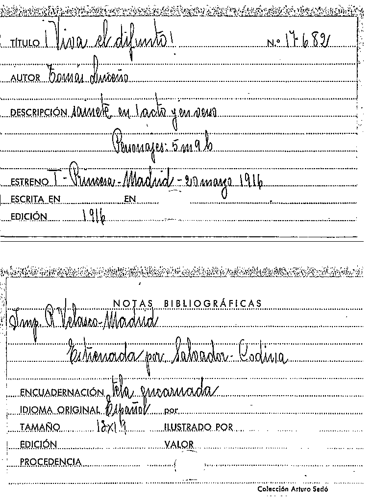 ¡Viva el difunto! / Tomás Luceño y Becerra by