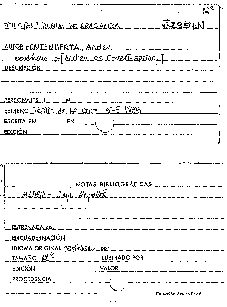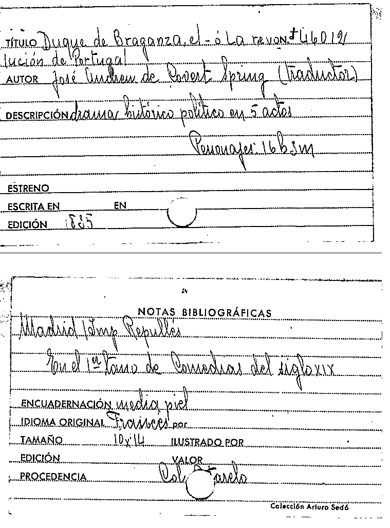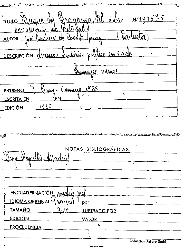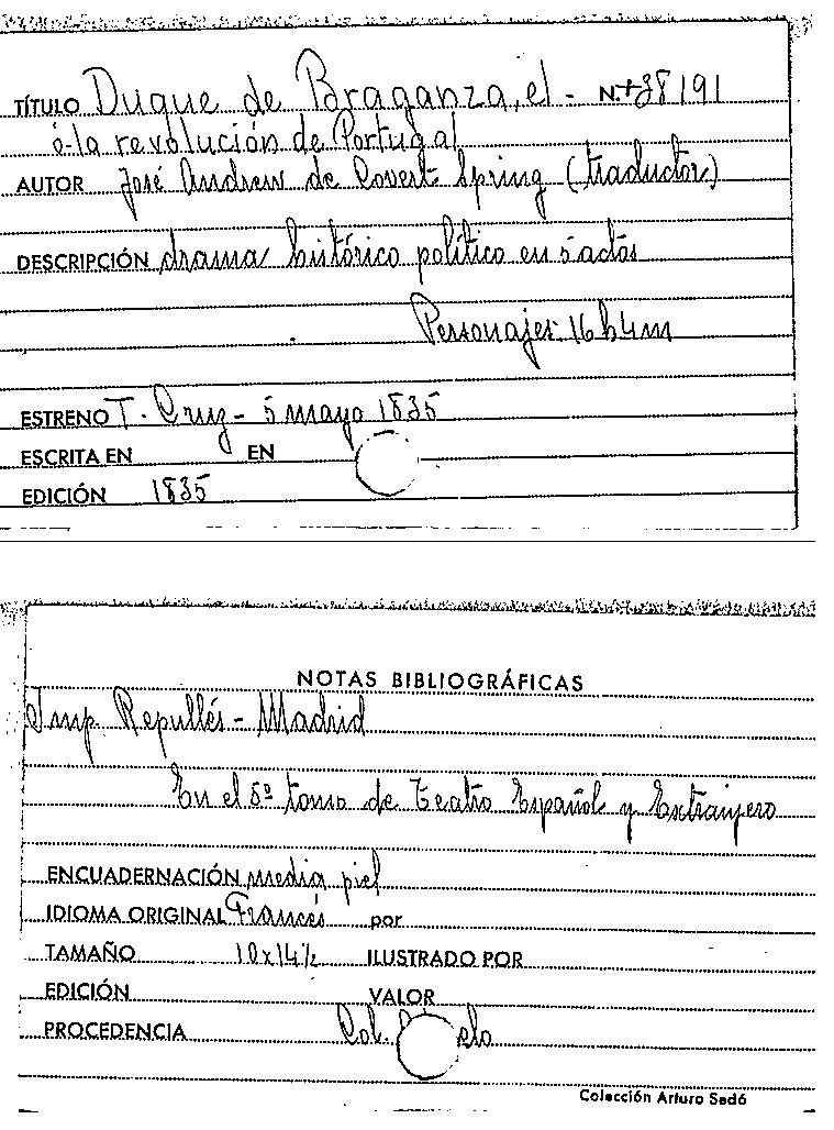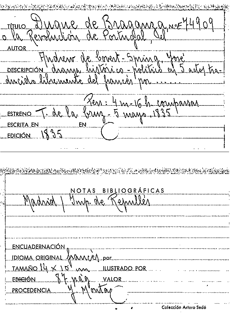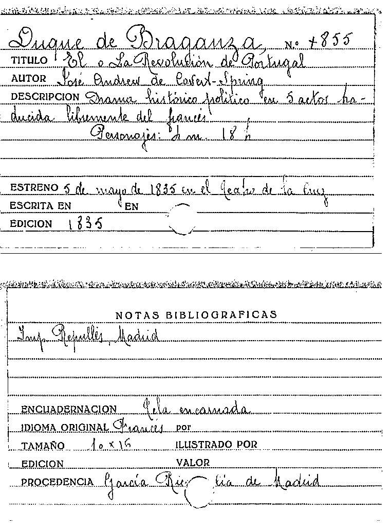 El duque de Braganza : ó, La revolucion de Portugal : drama histórico-político en cinco actos / traducido libremente del francés por José Andrew de Covert-Spring by