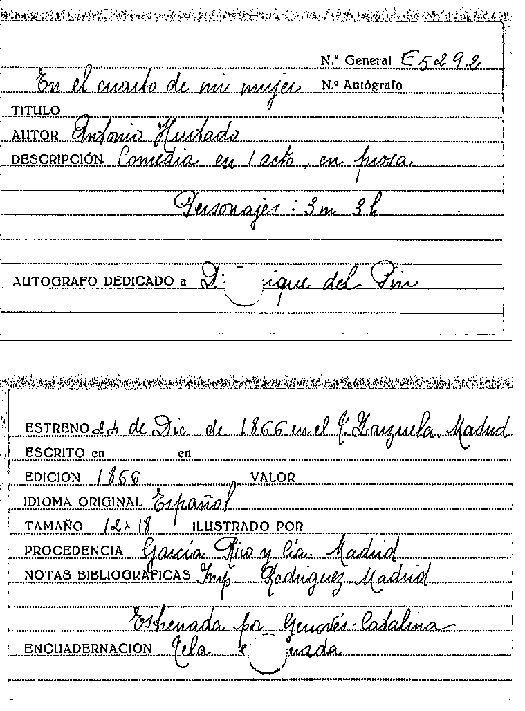 En el cuarto de mi mujer : comedia en un acto, en prosa / original de Antonio Hurtado by