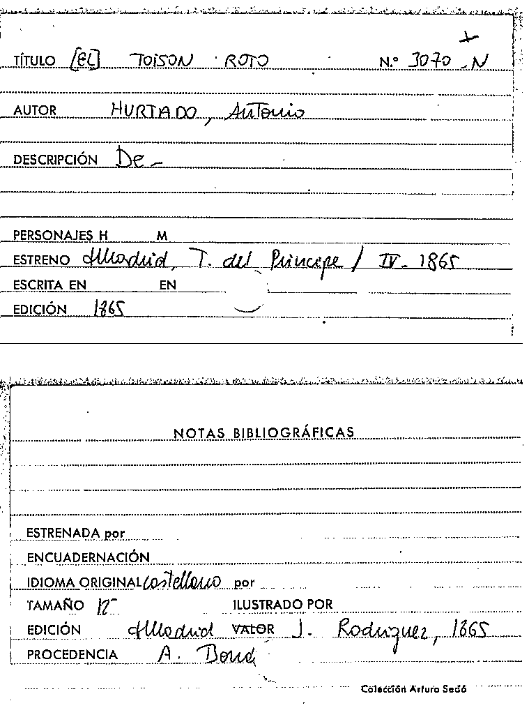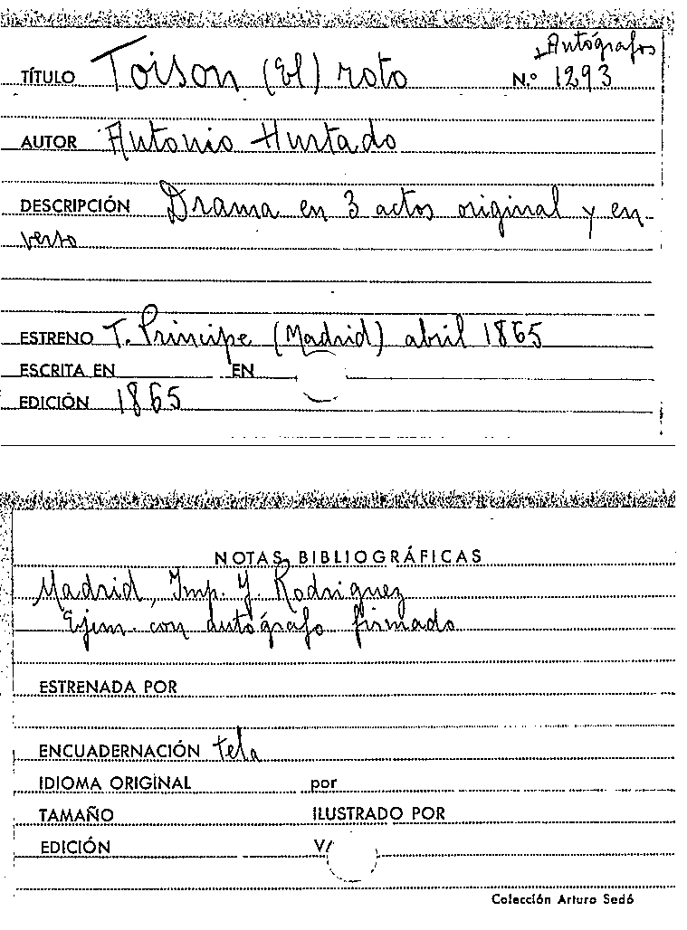 El Toisón roto : drama en tres actos original y en verso / por Antonio Hurtado by