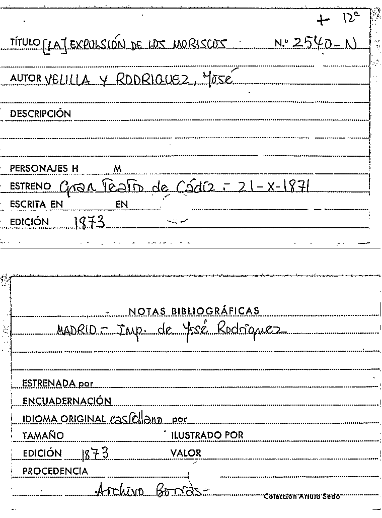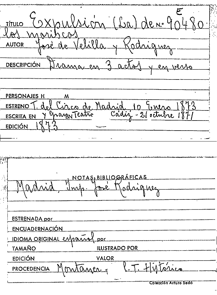 La expulsión de los moriscos : drama en tres actos y en verso / original de José de Velilla y Rodríguez by