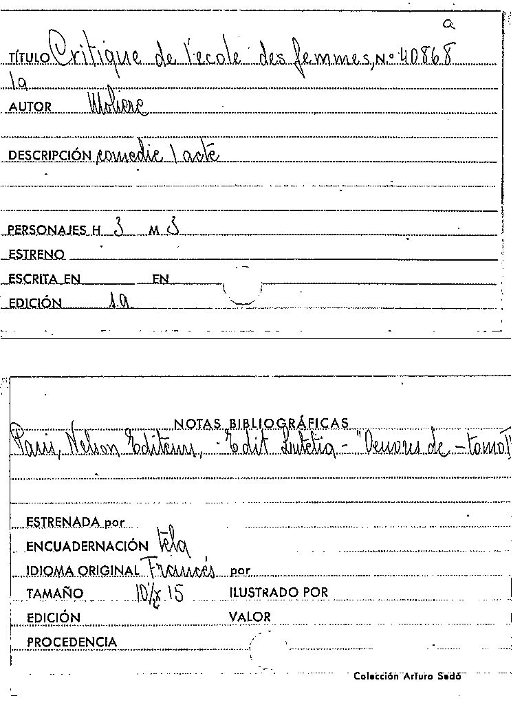 La Critique de l'ecole des femmes / Molière by