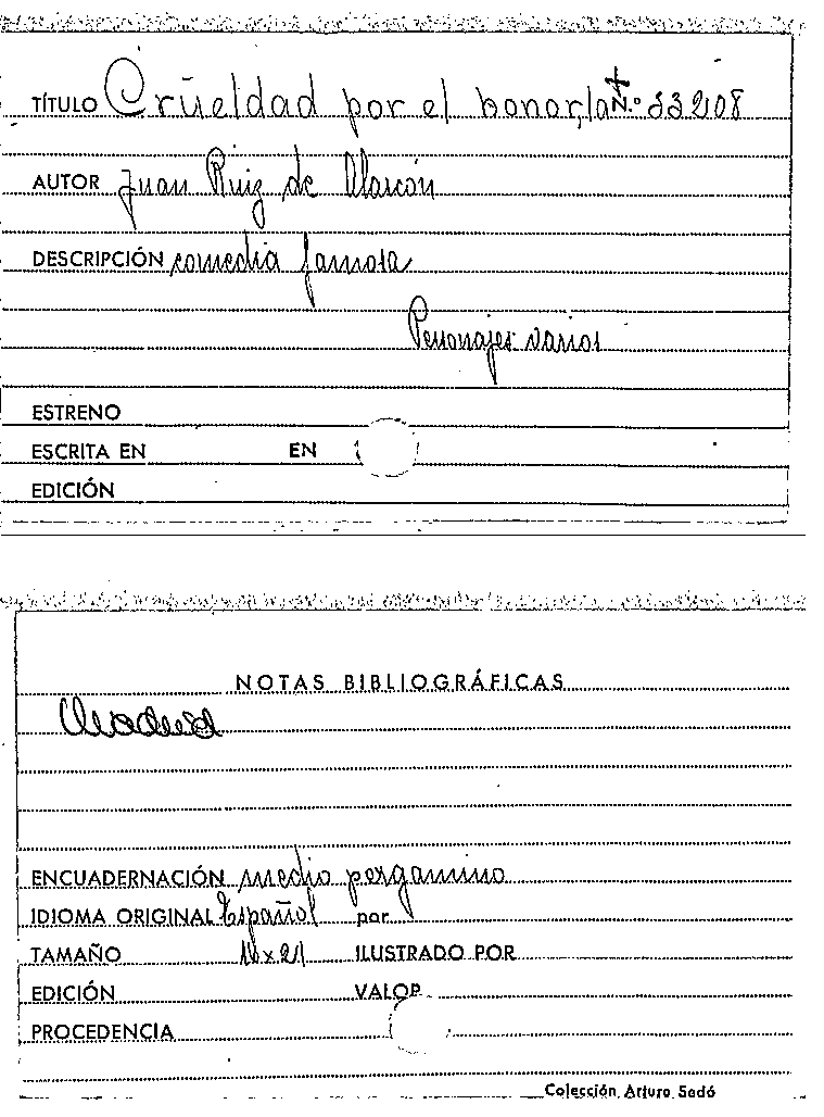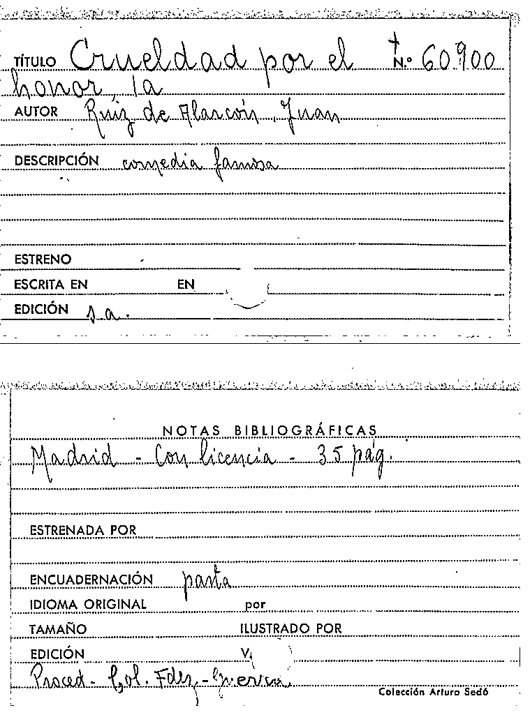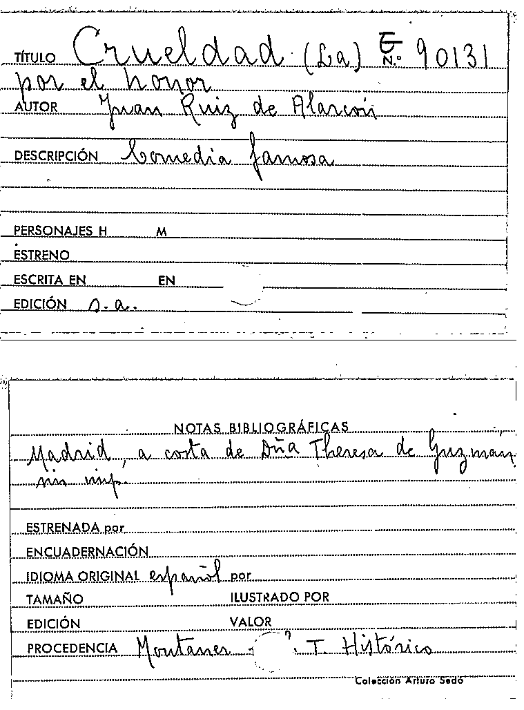 La Crueldad por el honor / Juan Ruiz de Alarcón by