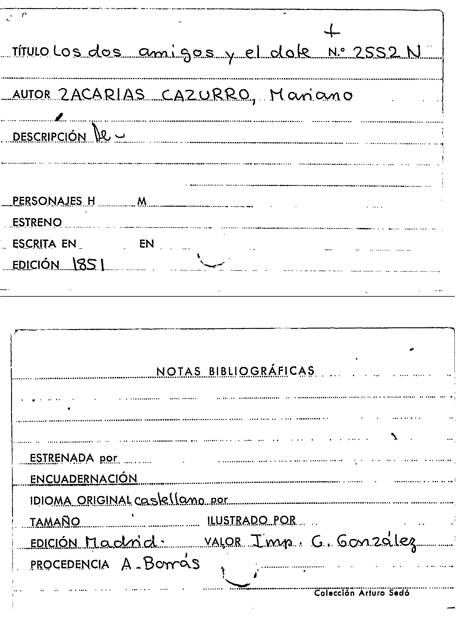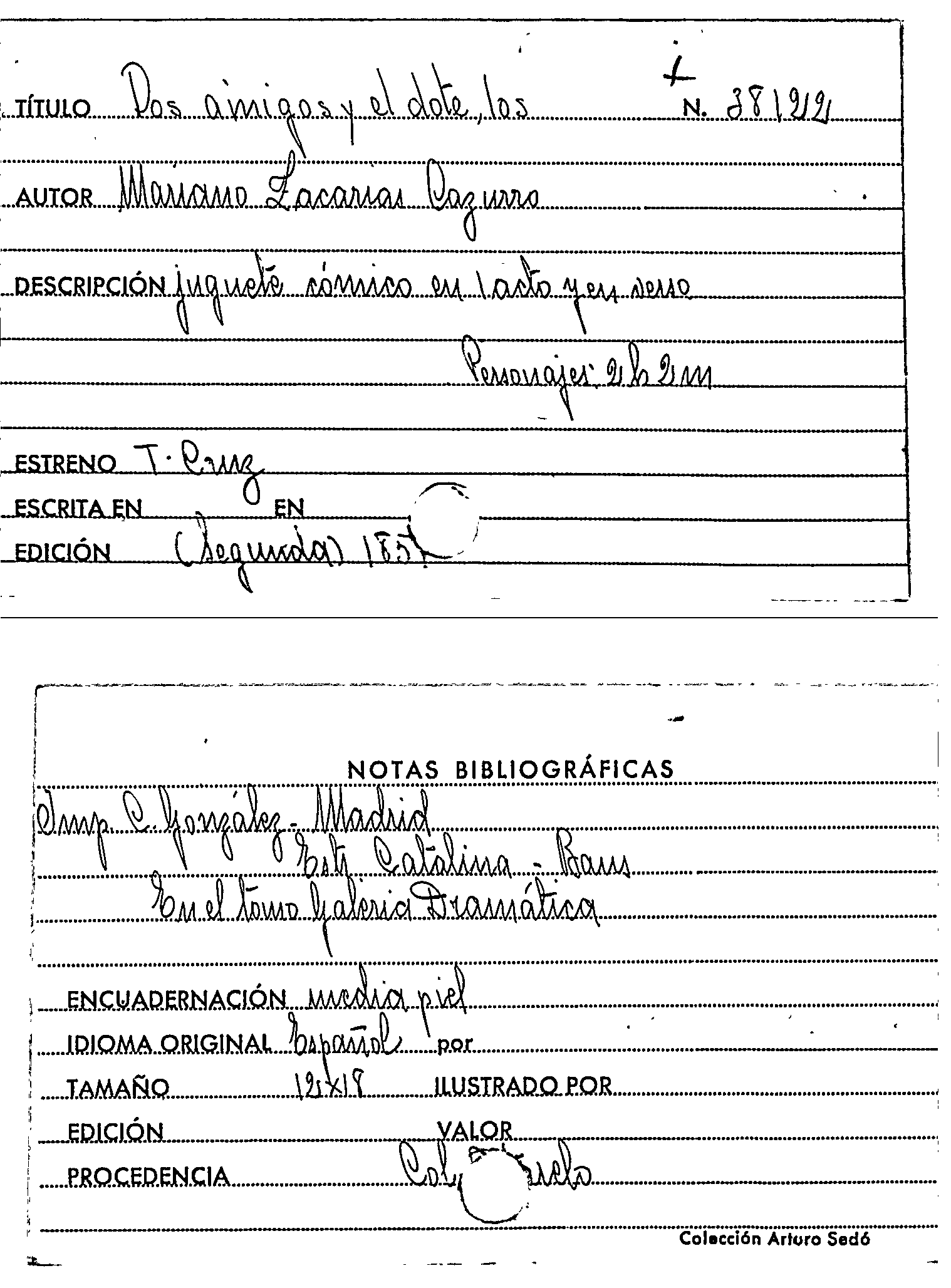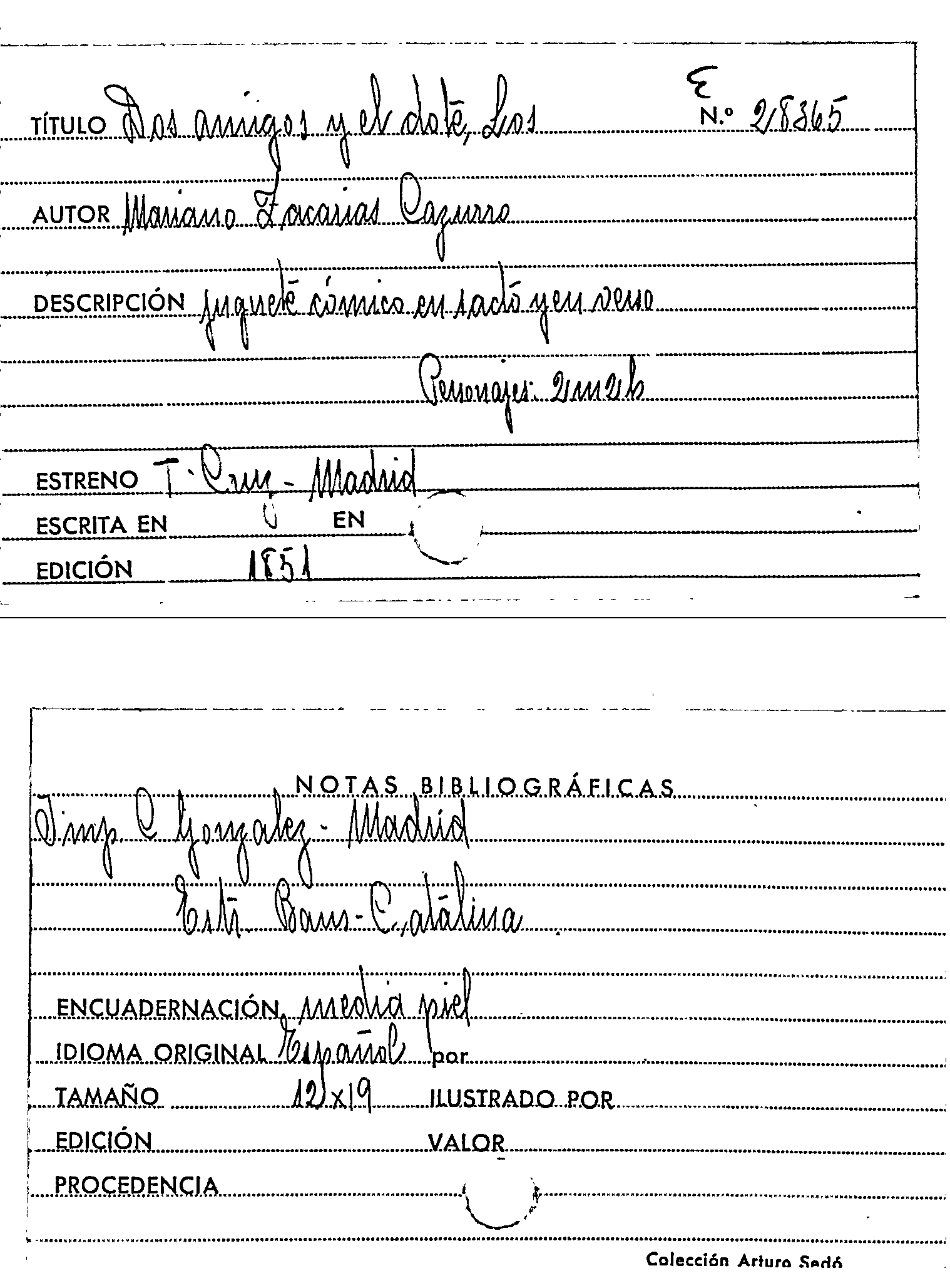 Los dos amigos y el dote : juguete cómico en un acto y en verso / por Mariano Zacarias Cazurro by Series: Circulo literario comercial ; no. 43