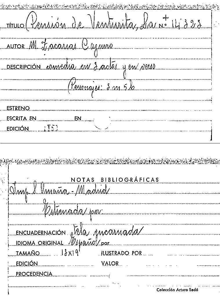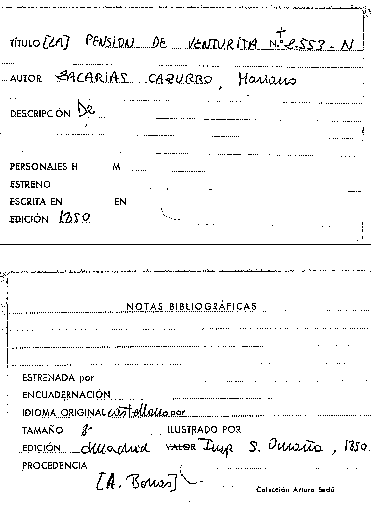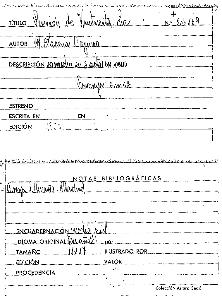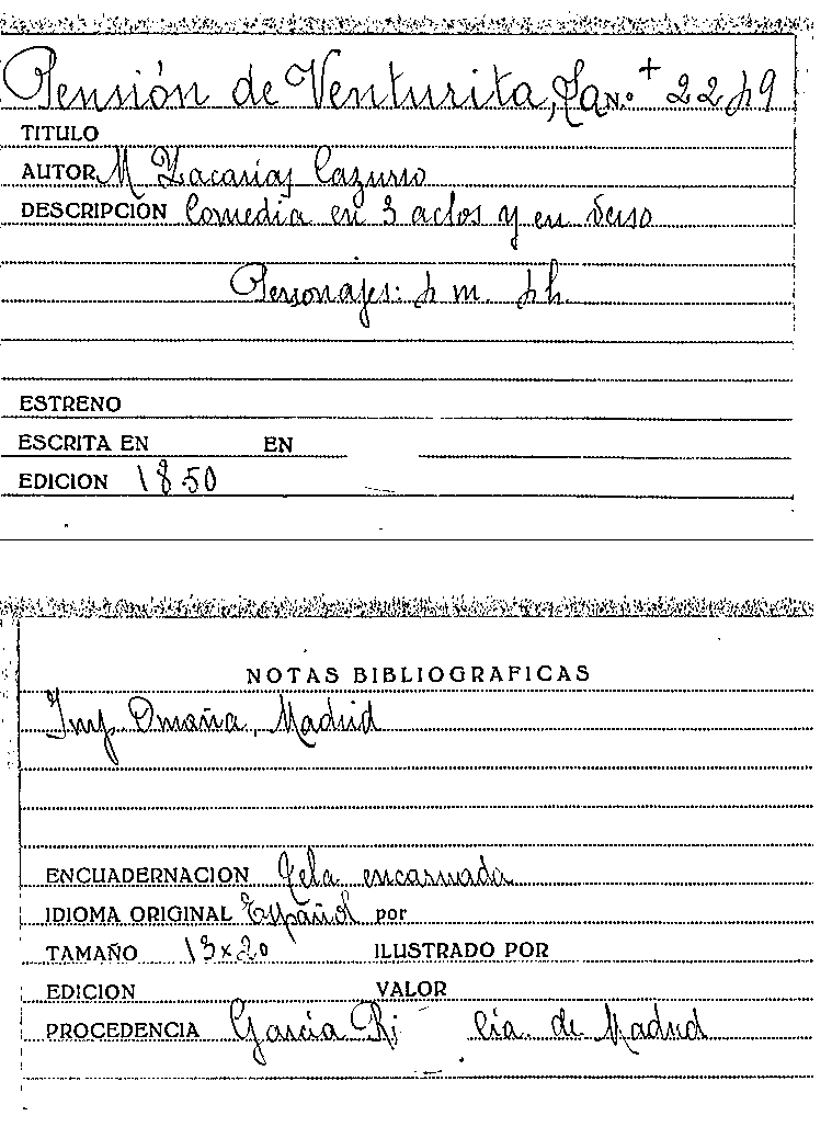 La pension de Venturita : comedia en tres actos y en verso / original de M. Zacarías Cazurro by Series: Circulo literario comercial ; no. 103 | La españa dramatica