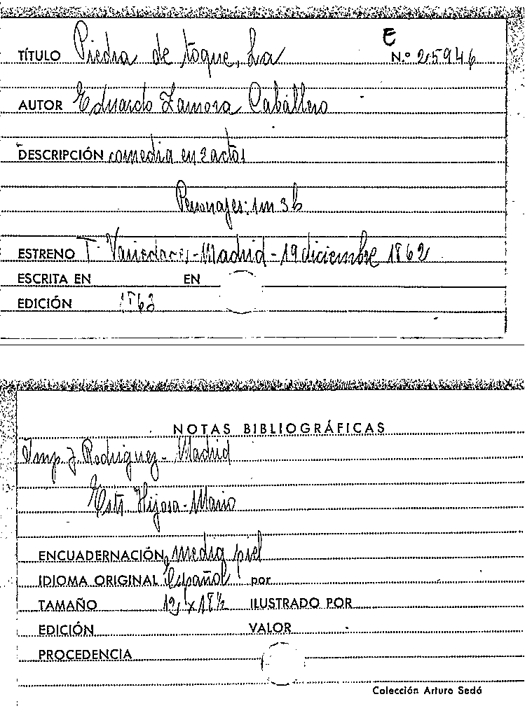 La piedra de toque : comedia en tres actos / original de Eduardo Zamora y Caballero by