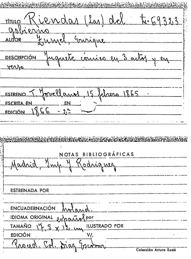 Las riendas del gobierno : juguete cómico en tres actos y en verso / original de Enrique Zumel by