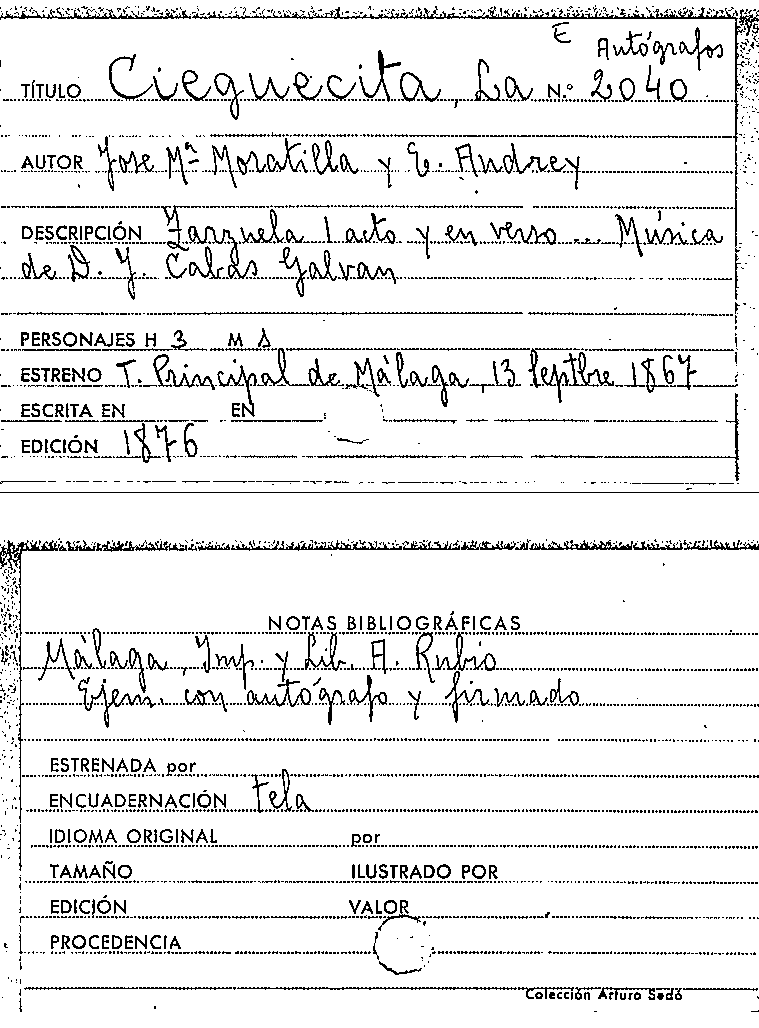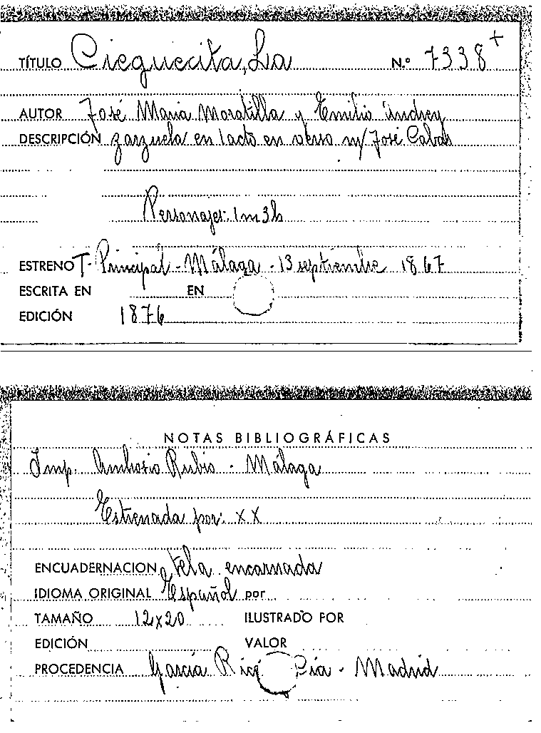 La Cieguecita : zarzuela en un acto y en verso / original de D. José Mª Moratilla y D. Emilio Andrey ; música de Don José Cabas Galban by